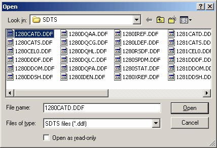You may use the following program to investigate the contents of SDTS file sets. We compiled the public domain sourcecode of the STDS++ package from "http://mcmcweb.er.usgs.gov/sdts/sdtsxx/index.html".